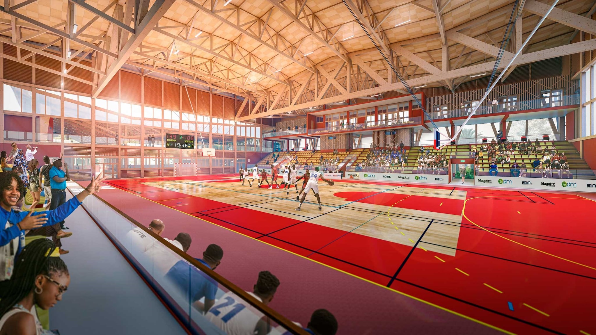 Nel dipartimento francese d’oltremare di Mayotte, a M’tsangamouji, verrà realizzata una palestra di design progettata dall’Atelier Mahorais d’Architecture che ha dato alla struttura una forte impostazione bioclimatica. Per la sua realizzazione le autorità hanno individuato un primario general contractor francese che, a sua volta, ha scelto Legnolandia per la fabbricazione della struttura portante totalmente in legno lamellare di pino e che deve avere una caratteristica aggiuntiva fondamentale: un trattamento speciale contro le termiti. Legnolandia ha una lunga esperienza nei trattamenti del legno in autoclave, fondamentale per resistere agli attacchi di questi insetti molto diffusi sull’isola. Lo stabilimento Eurostratex di Sutrio si sta occupando di progettazione e realizzazione di una superficie coperta di 3.500 metri quadrati.